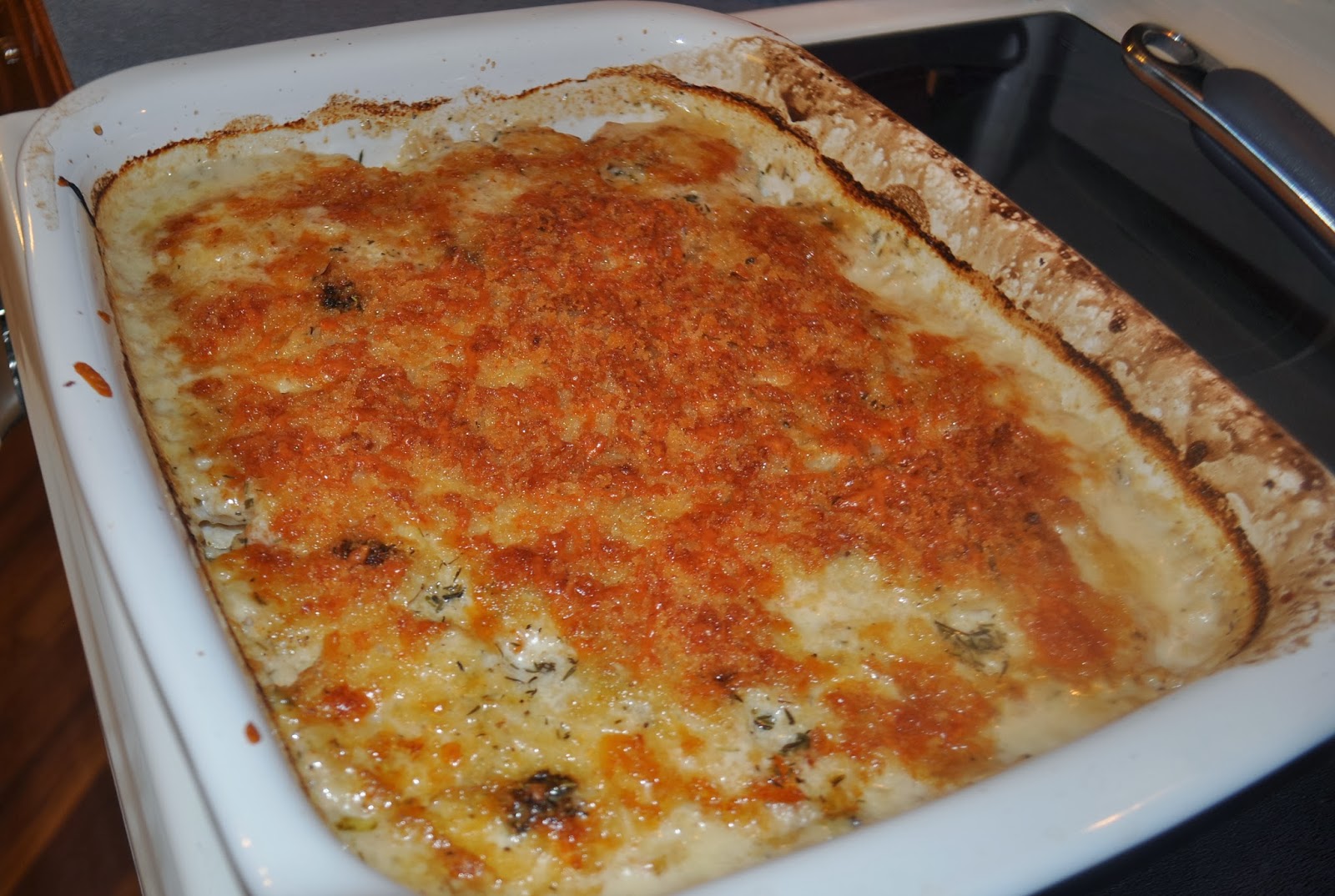Standard Au Gratin potatoes (I was heavy-handed on the cayenne. I won't apologize for it.) |